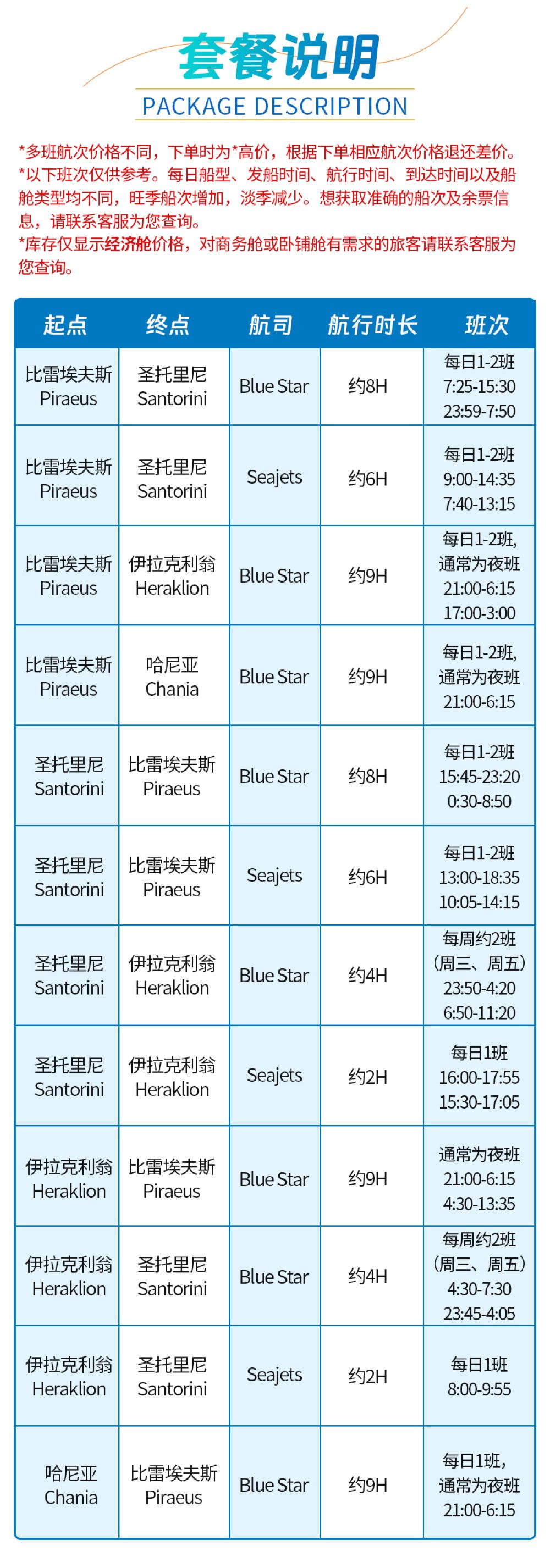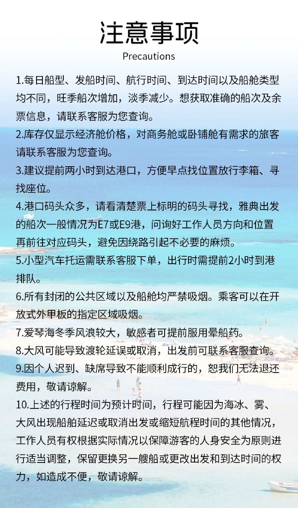 1. ประเภทเรือ เวลาเดินเรือ ระยะเวลาในการเดินทาง และเวลาถึงในแต่ละวันจะแตกต่างกัน โดยในไฮซีซั่นจะมีเที่ยวเรือเพิ่มขึ้น ส่วนโลว์ซีซั่นจะลดลง หากต้องการข้อมูลเที่ยวเรือและตั๋วที่เหลืออย่างแม่นยำ กรุณาติดต่อฝ่ายบริการลูกค้าเพื่อให้ตรวจสอบให้คุณ