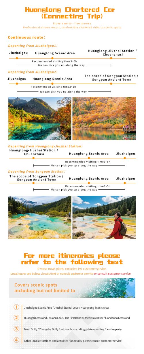 รถสายตรงจากปากทางเข้าจิ่วจ้ายโกวถึงสถานีรถไฟความเร็วสูงหวงหลง-จิ่วจ้ายโกว [รถทัวร์แบบครบวงจร] ขึ้นรถได้หลายจุด