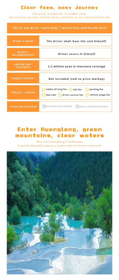 เช่าเหมาลำทัวร์ชมทัศนียภาพหวงหลงแบบไปเช้าเย็นกลับ: จิ่วจ้ายโกว - หวงหลง - สถานีรถไฟความเร็วสูง (รถ 5-7-9 ที่นั่ง)