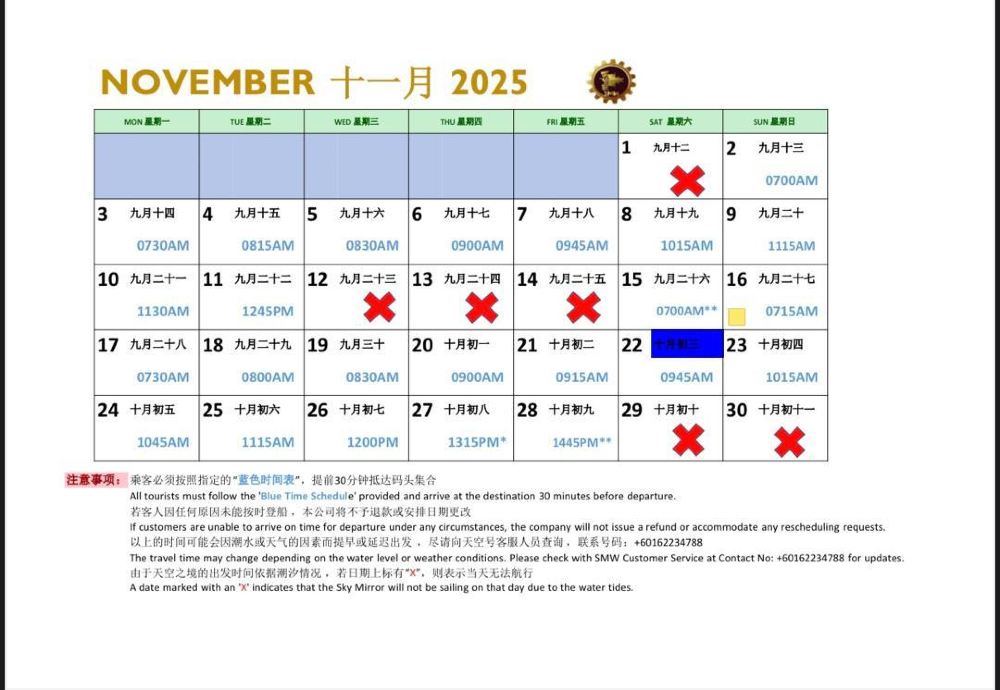 ▲ ตารางเวลา SkyMirror เดือนพฤศจิกายน