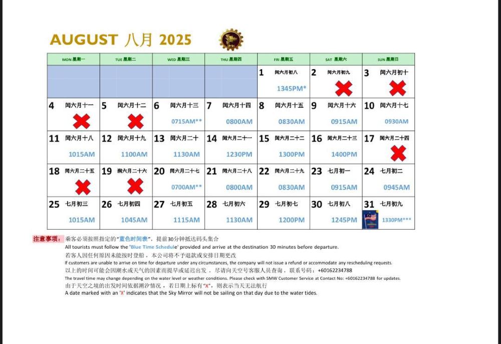 ▲ ตารางเวลา SkyMirror เดือนสิงหาคม