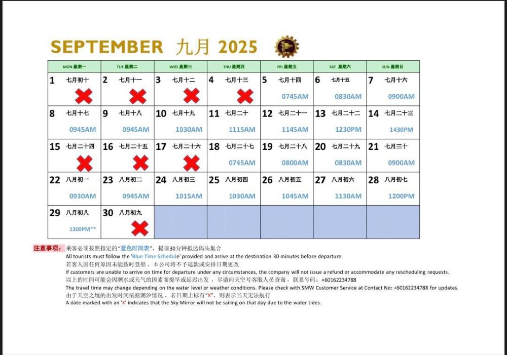 ▲ ตารางเวลา SkyMirror เดือนกันยายน
