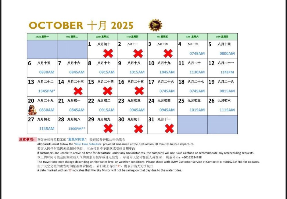 ▲ ตารางเวลา SkyMirror เดือนตุลาคม