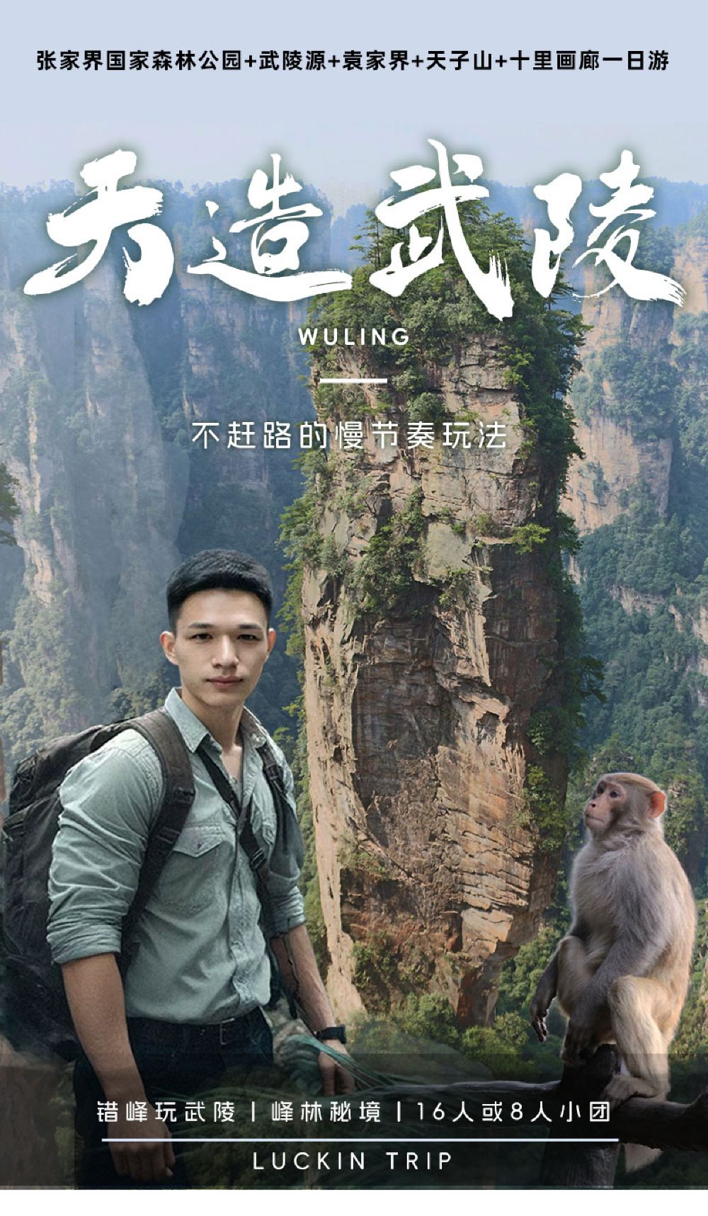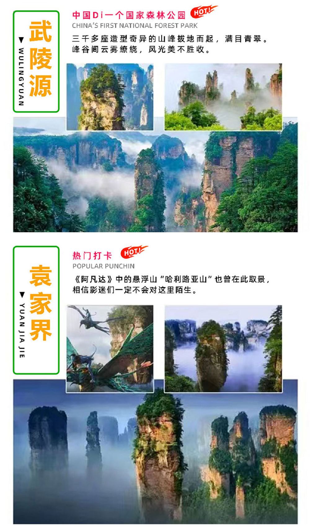 ช่วงเช้า: รับที่เมืองจางเจียเจี้ยเวลาประมาณ 07:30 น. ขึ้นรถบัสไปยังพื้นที่ท่องเที่ยว Wulingyuan (ประมาณ 40 นาที) จากนั้นเปลี่ยนสายรถบัสที่เป็นมิตรต่อสิ่งแวดล้อม สถานที่ท่องเที่ยว ไปยัง [ลิฟต์ Bailong] (ค่าธรรมเนียมเพิ่มเติม เที่ยวเดียว)ตรงไปยัง[สถานที่ท่องเที่ยว เจียเจี้ย]ชมการรวมตัวของเหล่าทวยเทพ สะพานแห่งแรกของโลก และสถานที่ถ่ายทำภาพยนตร์เรื่อง “อวตาร” – “ภูเขาฮาเลลูยาห์” แล้วนั่งรถบัสไป[พื้นที่ชมทัศนียภาพภูเขาเทียนจื่อ](ใช้เวลาเดินทางประมาณ 40 นาที);