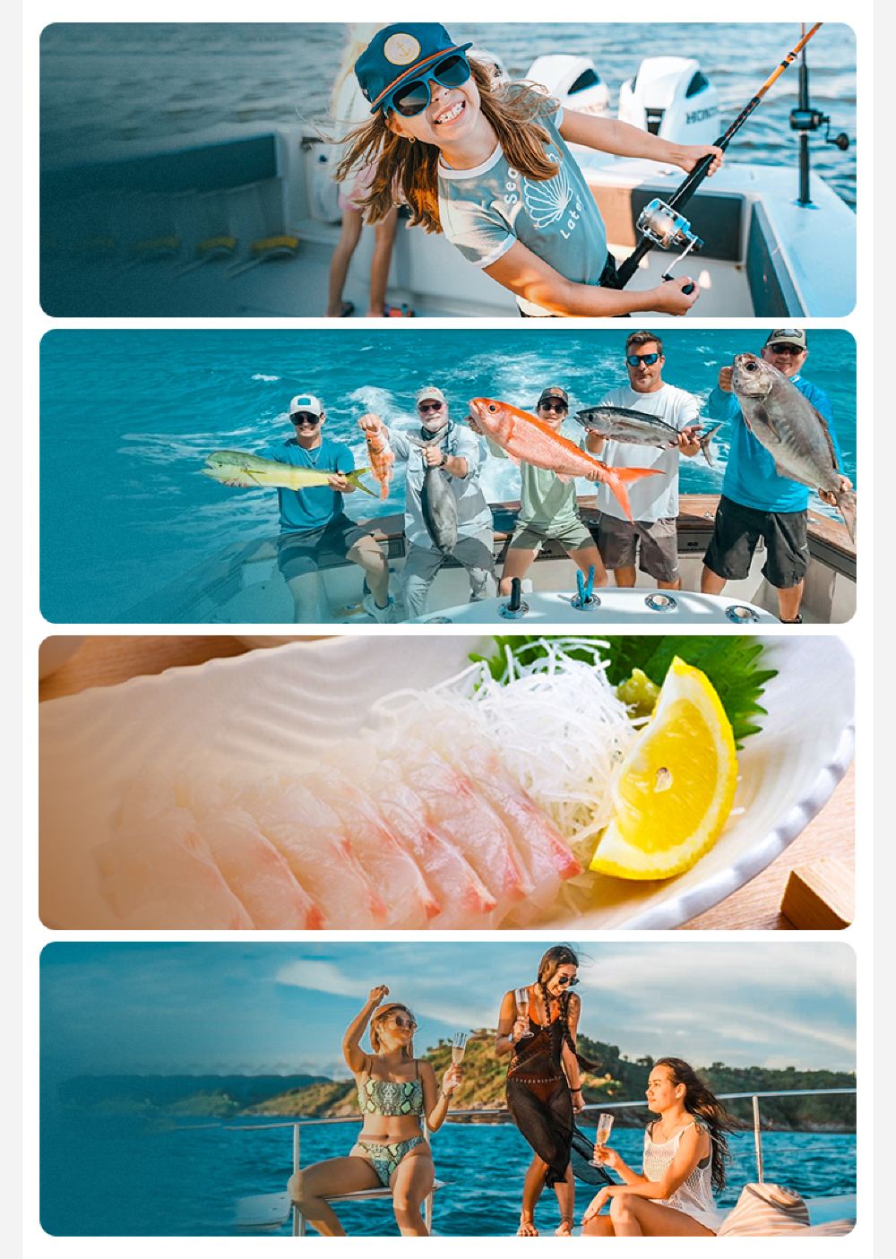 นอกจากบริการตกปลาทะเลแบบรวมกลุ่มแล้ว เรายังมีบริการเช่าเรือส่วนตัว! กัปตันเรือและไกด์ตกปลาพร้อมดูแลคุณตลอดทริป พาคุณไปสัมผัสจุดตกปลาและจุดดำน้ำระดับ VIP พร้อมออกแบบทริปได้ตามต้องการ ไม่ว่าจะเป็นทริปตกปลาลึก ถ่ายรูปสแน็ปช็อตกับปลาหรือกิจกรรมสนุกสนานสำหรับครอบครัว เรารองรับทุกความต้องการ!