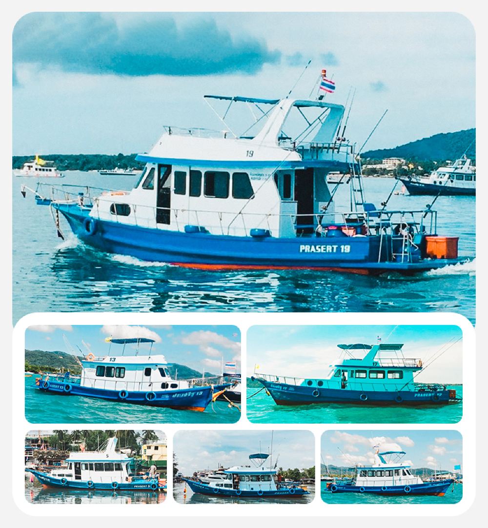 เรือตกปลามืออาชีพ | ตกปลา·ดำน้ำตื้น | ทำอาหารสด | อาหารเที่ยงแบบไทย