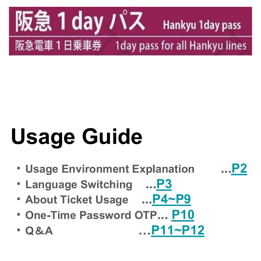 - "ตั๋วรถไฟฮันคิววันเดียว" สามารถใช้ได้ภายใน 1 วันใดก็ตาม ไม่จำกัดจำนวนครั้ง ในการเดินทางด้วยรถไฟฮันคิวทุกสายที่เชื่อมต่อระหว่างโอซากะ เกียวโต โคเบะ และทาคาราซูกะ (ไม่รวมสายโคเบะโคโซคุ)