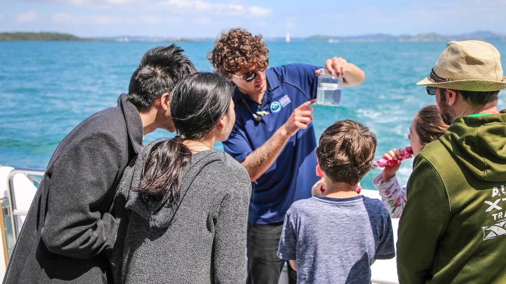 จากดาดฟ้าเรือขนาดใหญ่ของเรา คุณสามารถชมสถานที่สำคัญที่มีชื่อเสียงของโอ๊คแลนด์ เช่น สะพานท่าเรือ (Harbour Bridge), นอร์ทเฮด (North Head) และเดวอนพอร์ต (Devonport) รวมถึงเกาะภูเขาไฟแรงีโตโต (Rangitoto) ในขณะเดียวกันคุณยังมีโอกาสได้เห็นวาฬเพชฌฆาตและโลมาที่มักปรากฏตัวในอ่าวไวเตมาตา (Waitemata Harbour) เมื่อเจ้าหน้าที่บนเรือให้คำบรรยายที่เต็มไปด้วยความรู้ ผู้เชี่ยวชาญด้านวิทยาศาสตร์ทางทะเลของเรากำลังดำเนินการวิจัยทางชีวภาพ และเชิญชวนให้คุณเข้าร่วมกิจกรรมวิจัยแบบมีส่วนร่วม