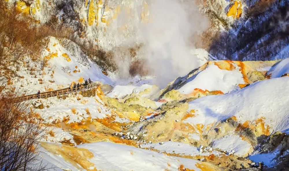 ▲ หุบเขานรกโนโบริเบ็ตสึ สัมผัสความอัศจรรย์ของพลังงานความร้อนใต้พิภพอันเป็นเอกลักษณ์ของฮอกไกโด เดินเล่นบนทางเดินไม้ยาว 600 เมตร ชมร่องรอยปล่องภูเขาไฟกว้าง 450 เมตรที่พ่นไอน้ำกำมะถัน กลิ่นแร่ธาตุเฉพาะตัวลอยอยู่ในอากาศ ราวกับก้าวเข้าสู่ "ประตูนรก" ที่ยิ่งใหญ่และเต็มไปด้วยความลึกลับ