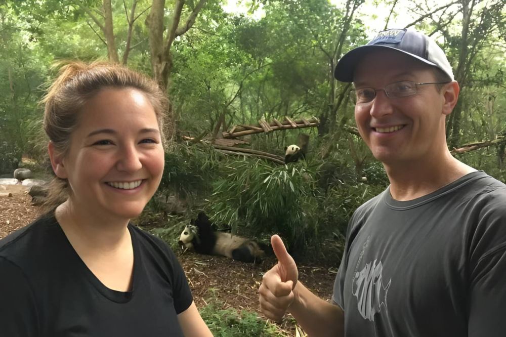 ▲ รูปปั้นแพนด้าทองคำซึ่งตั้งอยู่ที่ลานหน้าทางเข้าฐานวิจัยการเพาะเลี้ยงหมีแพนด้ายักษ์เฉิงตู เป็นแลนด์มาร์กสีทองแบบนามธรรมสูง 15 เมตร เส้นโค้งที่พลิ้วไหวแสดงภาพหมีแพนด้ากำลังโอบกอดต้นไผ่ ส่องประกายระยิบระยับใต้แสงอาทิตย์ นอกจากจะเป็นจุดเด่นทางสายตาแล้ว ยังมีความหมายเชิงสัญลักษณ์อันลึกซึ้ง โดยฐานของรูปปั้นมีการสลักชื่อของนักวิทยาศาสตร์ทั้งชาวจีนและต่างชาติ เพื่อเป็นเกียรติแก่ความร่วมมือระดับโลกในการอนุรักษ์ และแสดงถึงวิสัยทัศน์แห่งความสมานฉันท์ระหว่างมนุษย์กับธรรมชาติ