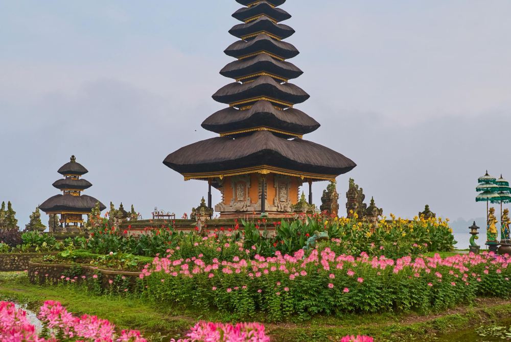 ▲ ลอยตัวเบาๆ บนทะเลสาบเบราตัน วัดน้ำแห่งนี้สะท้อนเงาอย่างสมบูรณ์แบบบนผิวน้ำที่นิ่งสงบ—ฉากหลังเป็นภูเขาทำให้บรรยากาศดูสงบและเกือบจะลึกลับ