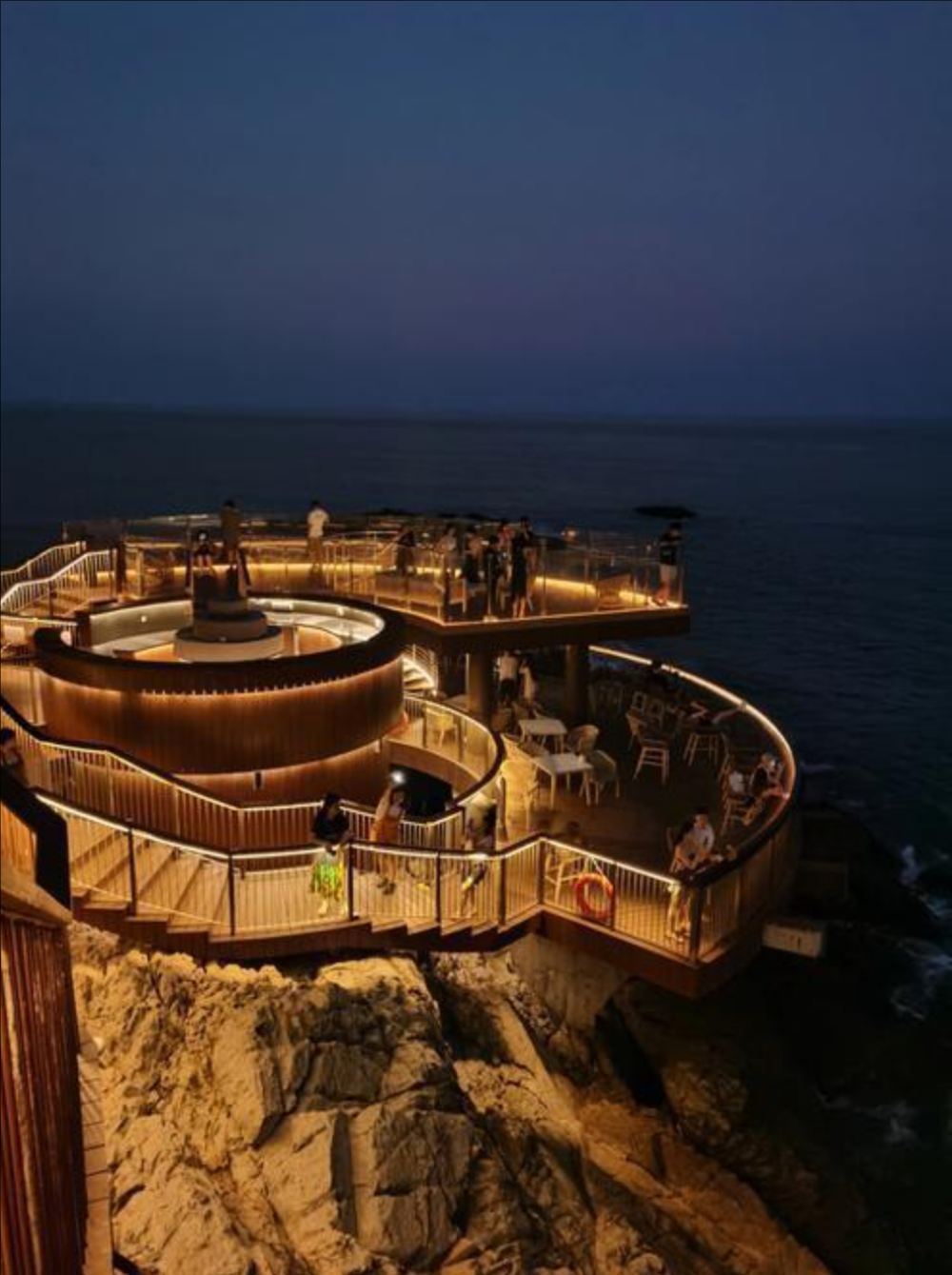 ▲ Huizhou Reef Bar: ซิมโฟนีโรแมนติกแห่งคลื่นและความมึนเมา นั่งที่บาร์กลางแจ้งที่แกะสลักจากแนวปะการังธรรมชาติ พร้อมคลื่นสีเขียวมรกตที่ซัดกระทบโขดหินและน้ำที่กระเซ็น สั่งเครื่องดื่มพิเศษและชมพระอาทิตย์ตกที่ย้อมทะเลให้เป็นสีแดงทอง โดยมีเพียงจังหวะของคลื่นและเสียงเพลงแจ๊สเบาๆ ในหูของคุณ เมื่อตกกลางคืน ไฟสีเหลืองอบอุ่นจะสว่างขึ้น และเสียงคลื่นจะกลายเป็นเสียงพื้นหลัง ราวกับว่าทะเลทั้งหมดเป็นพื้นที่ส่วนตัวของคุณ เวลาเปิดทำการ: 10.00-22.00 น. (แนะนำให้ไปก่อนพระอาทิตย์ตก 1-2 ชม. เพราะแสงและเงาจะสวยงาม) หมายเหตุ: ต้องจองล่วงหน้า และ ช่วงนักท่องเที่ยวหนาแน่น (พีคซีซั่น) จะหาที่นั่งได้ยาก แนวปะการังลื่น ดังนั้นควรหลีกเลี่ยงการสวมรองเท้าส้นสูง ลมทะเลแรง ควรนำเสื้อแจ็คเก็ตบางๆ มาด้วย มาที่สถานที่ลับระหว่างภูเขาและทะเลแห่งนี้ แล้วปล่อยให้แอลกอฮอล์และลมทะเลพัดผ่านศีรษะของคุณอย่างอ่อนโยน