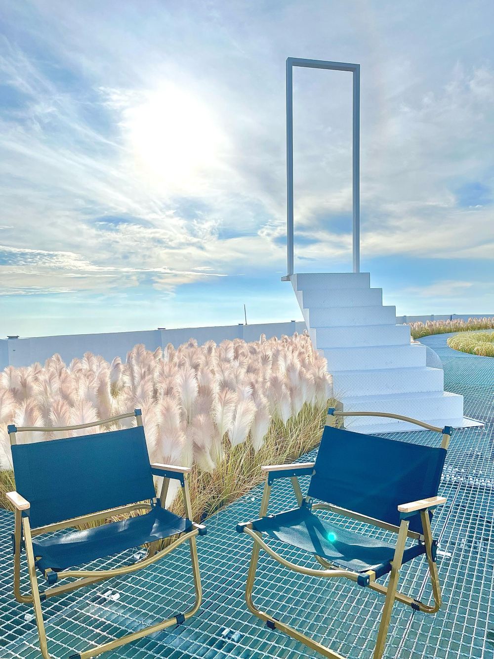 บันไดสายรุ้งอันเป็นเอกลักษณ์และจุดถ่ายรูปสุดฮิตบนอินสตาแกรม — บันไดนี้ดูเหมือนทอดยาวขึ้นสู่ท้องฟ้า สร้างบรรยากาศเหมือนฝันให้กับภาพถ่ายของคุณ