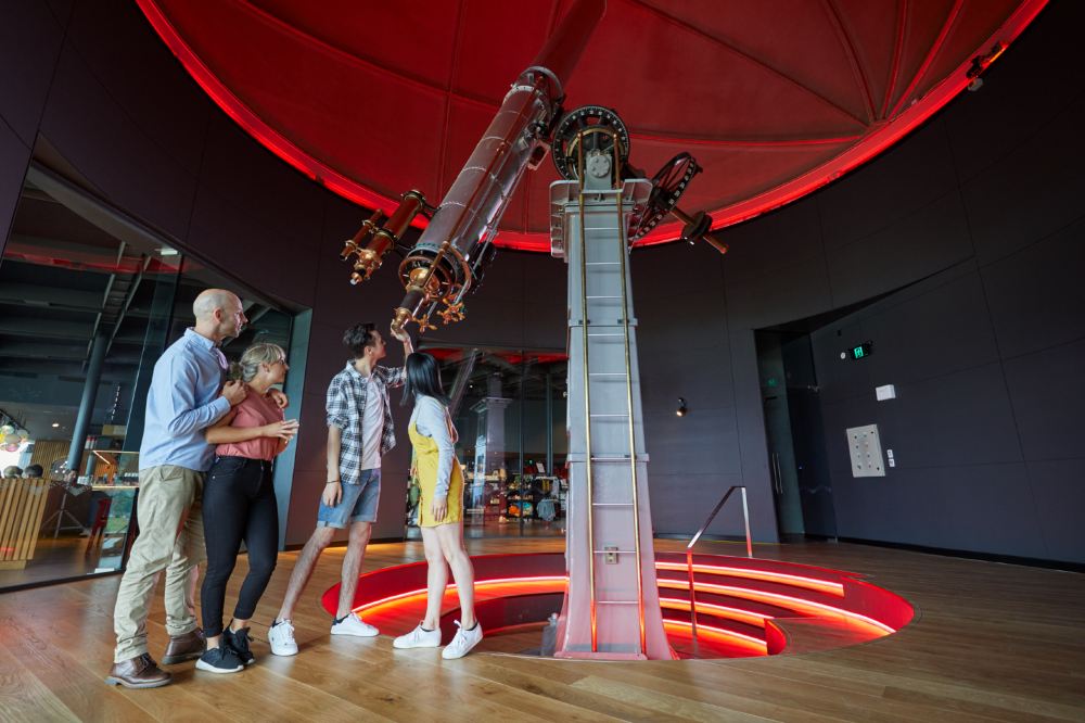 ▲ ประสบการณ์ท้องฟ้ามืดมิดจะทำให้คุณครุ่นคิด ได้รับความรู้ และความบันเทิงไปพร้อมกัน มันจะเปลี่ยนวิธีที่คุณมองดูท้องฟ้ายามค่ำคืนไปตลอดกาล ไกด์นำเที่ยวผู้เต็มไปด้วยความหลงใหลของเราจะนำคุณท่องเที่ยวเป็นเวลา 45 นาทีในศูนย์ดาราศาสตร์ในร่มของเรา ผ่านสี่โซนที่แตกต่างกัน