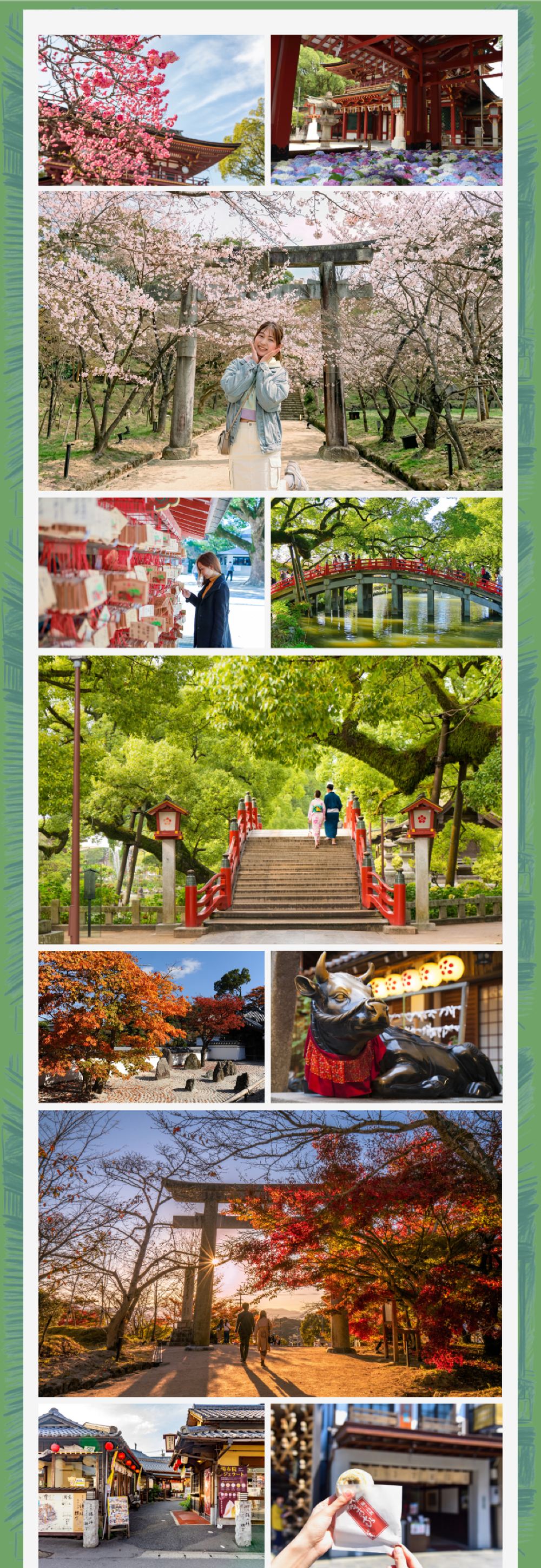 ศาลเจ้าที่มีประวัติศาสตร์อันยาวนานในการบูชาเทพแห่งการเรียนรู้ ล้อมรอบด้วยดอกไม้และต้นไม้ตลอดทั้งปี เป็นสถานที่ศักดิ์สิทธิ์ที่นักเรียนและผู้ชื่นชอบวัฒนธรรมมักมาเยือน