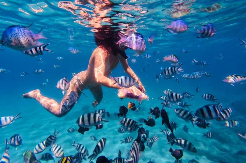 09:30 น.ที่เกาะหนูผู้เดินทางจะได้รับแว่นตาว่ายน้ำเพื่อดำน้ำตื้นชมแนวปะการังสีสันสดใสและสัตว์ทะเลหลากหลายชนิด พร้อมสัมผัสกิจกรรมพิเศษการให้อาหารปลาในกลางทะเล ซึ่งเป็นประสบการณ์เฉพาะที่เกาะหน้ามุ่ย (ห้ามนำตีนกบมาโดยเด็ดขาด)