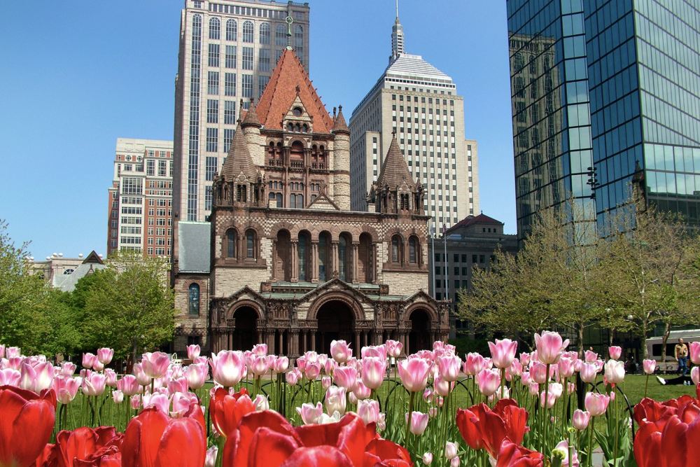 ▲ เยือนจตุรัสโคปลีกับโบสถ์ทรินิตี้ที่สวยงาม จากนั้นเดินเลียบเส้นทางฟรีดอมทรายผ่านสวนสาธารณะคอมมอนต์บอสตัน แวะพักรับประทานอาหารกลางวันที่ตลาดควินซี่
