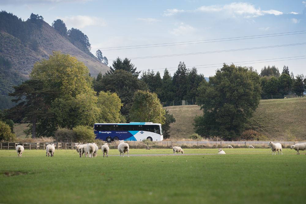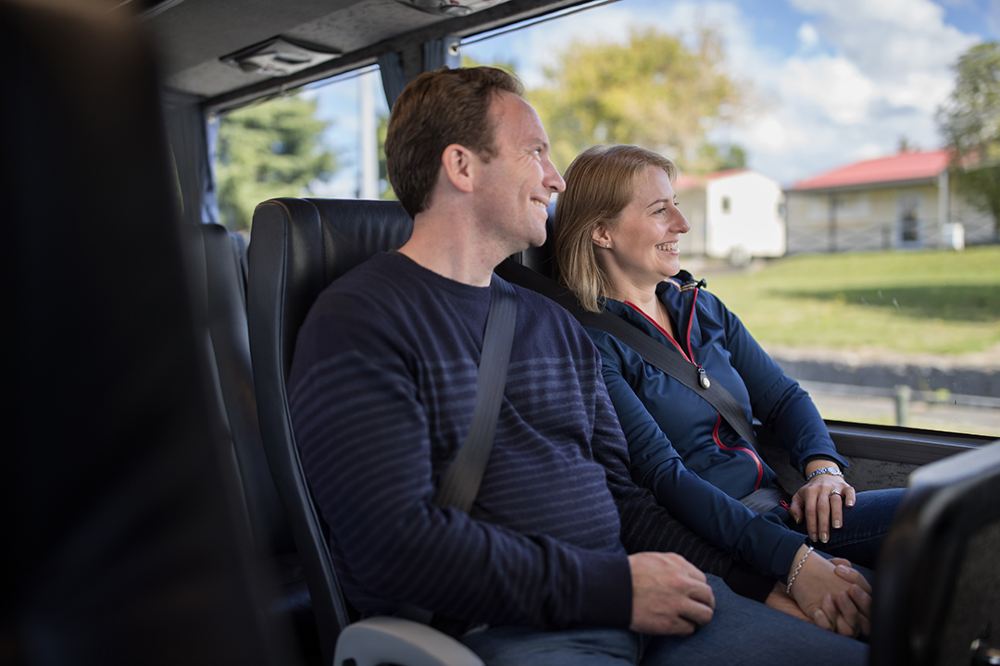▲ เลือกท่องเที่ยวด้วยรถบัสที่กว้างขวางและมีวิวสวยงาม พร้อมไกด์นำเที่ยวท้องถิ่นที่จะเล่าเรื่องราวของพื้นที่และประวัติศาสตร์ให้คุณฟัง มีบริการรับส่งฟรีจากโรงแรมที่กำหนดในใจกลางเมืองโอ๊คแลนด์ และมี Wi-Fi ฟรีบนรถบัส ให้คุณเดินทางอย่างสะดวกสบายไร้กังวล