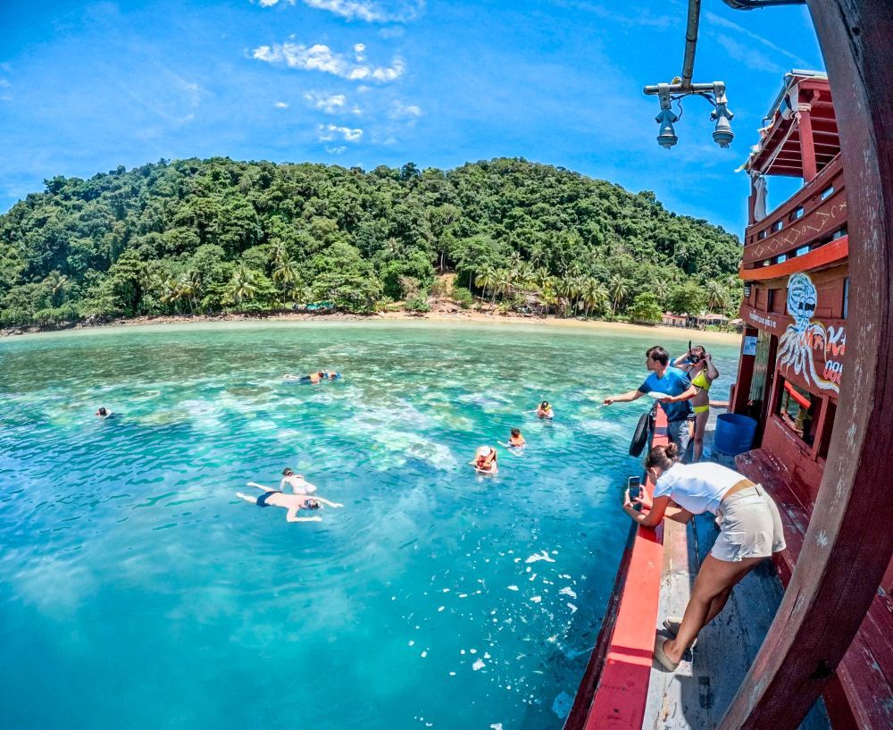 ทัวร์เรือไปยังอุทยานแห่งชาติทางทะเลหมู่เกาะรังและเกาะสวยงามต่างๆ เป็นสิ่งที่พลาดไม่ได้เมื่อมาเยือนเกาะช้าง เริ่มต้นด้วยบริการรับจากโรงแรมของคุณทางฝั่งตะวันตกของเกาะช้าง จากนั้นคุณจะเดินไปยังท่าเรือเพื่อขึ้นเรือเริ่มทัวร์ประมาณ 9.30 น. ช่างภาพมืออาชีพของเราจะอยู่กับคุณตลอดเพื่อบันทึกทุกช่วงเวลา ตั้งแต่ภาพถ่ายสบายๆ บนเรือจนถึงภาพใต้น้ำอันน่าทึ่งขณะที่คุณดำน้ำตื้น!