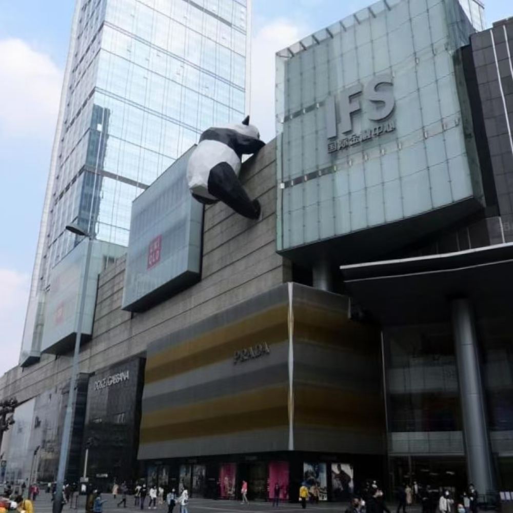 จุดรับ/ส่ง: ใต้ประติมากรรมแพนด้านอกเฉิงตู IFS มอลล์ ซึ่งเป็นที่ตั้งของร้าน Prada