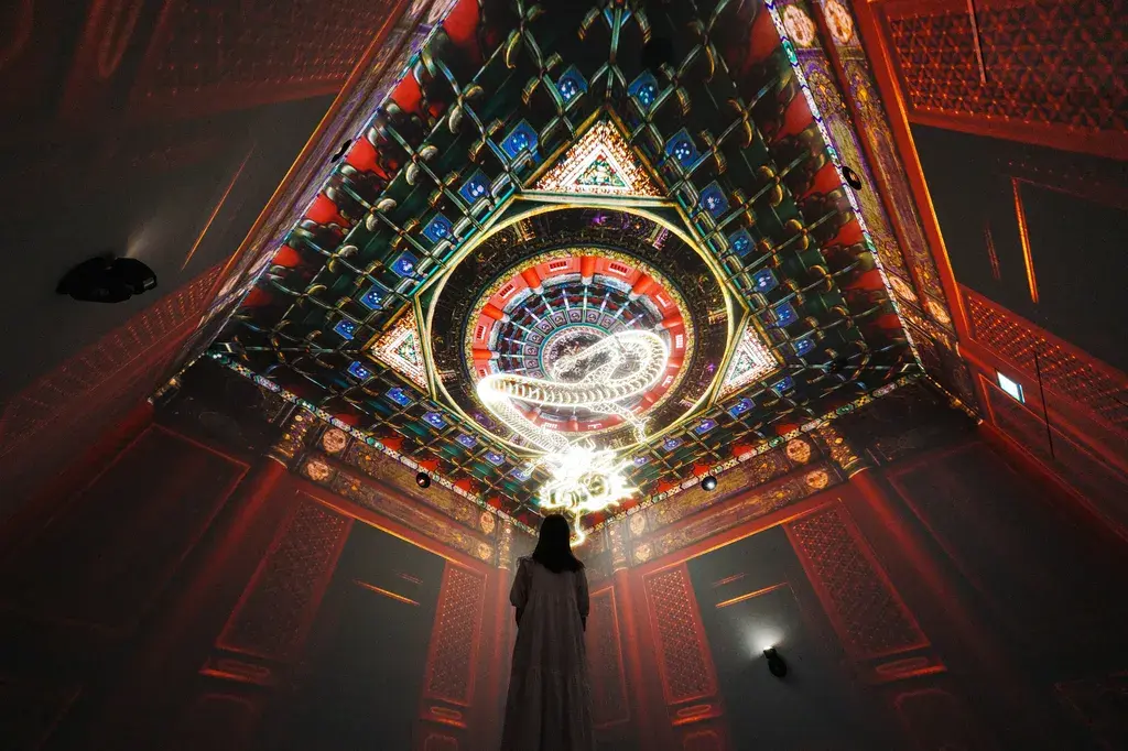 นิทรรศการนี้ซึ่งมีธีมเกี่ยวกับลวดลายของพิพิธภัณฑ์พระราชวัง ได้รับแรงบันดาลใจจากลวดลายอันวิจิตรที่ประดับตกแต่งสถาปัตยกรรม เครื่องเคลือบ และสิ่งทอภายในพิพิธภัณฑ์ฯ ด้วยการผสมผสานลวดลายเหล่านี้เข้ากับนวัตกรรมเทคโนโลยีดิจิทัล นิทรรศการได้เผยให้เห็นความหมายทางวัฒนธรรมอันล้ำค่าของลวดลายต่างๆ มาร่วมเดินทางผ่านโลกดิจิทัลเพื่อสำรวจลวดลายอันน่าทึ่งจากพิพิธภัณฑ์พระราชวัง และสัมผัสเสน่ห์ของวัฒนธรรมจีนดั้งเดิม