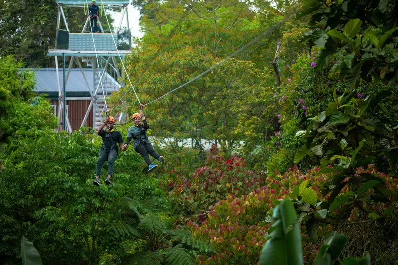 △ เพลิดเพลินไปกับสายลมและทิวทัศน์ขณะที่คุณโหนสลิงข้ามป่าฝน
