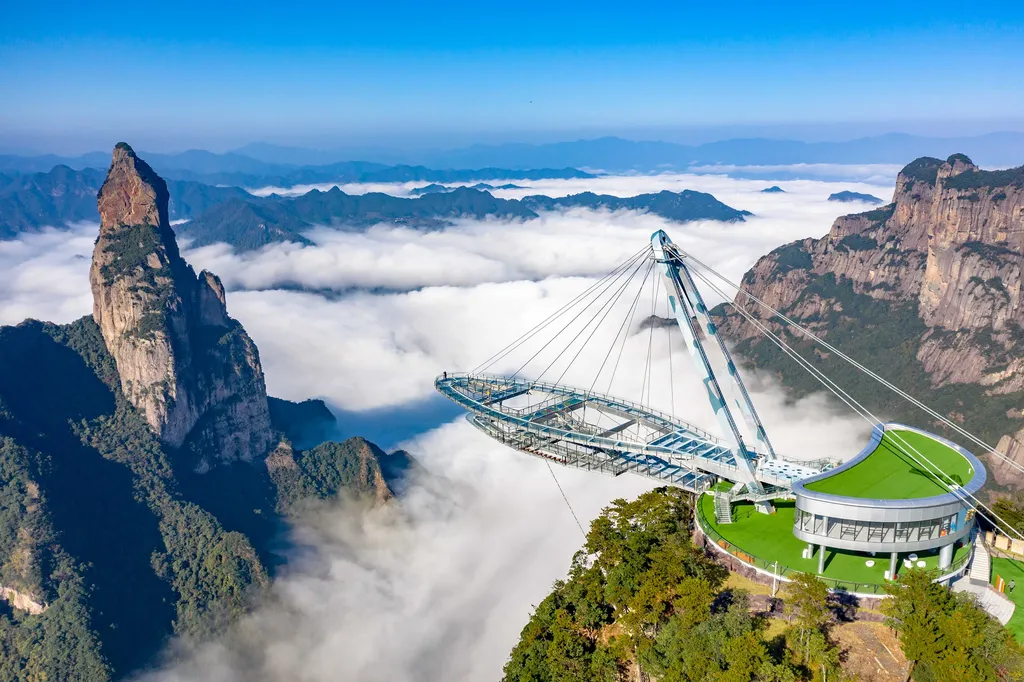 Shenxianju เป็นธรณีสัณฐานหินภูเขาไฟที่มีขนาดใหญ่ในโลก ภูมิทัศน์ที่อุดมสมบูรณ์และมีความเข้มข้น ยอดเขาแปลก ๆ ล้อมรอบด้วยยอดเขาเจ้าแม่กวนอิมสะพาน Ruyi สะพานมังกรหมอสะพาน Yuanmeng สะพาน Hongmeng สะพานพระพุทธรูปเงา Lianyun Lianhua Tai ยอดเขาทิศใต้บันไดสวรรค์ทิศใต้และสถานที่ท่องเที่ยวอื่น ๆ กว่าร้อยแห่ง มีศูนย์กลางอยู่ที่หุบเขาซีซี ก่อตัวเป็นยอดเขา หน้าผา ลําธาร และภูมิทัศน์น้ําตก จุดชมวิวมีประตูสวรรค์ใหญ่สี่ประตูคือตะวันออก ตะวันตก ใต้และเหนือ ประตูสวรรค์ประกอบด้วยยอดเขาอันตรายสองยอดที่ตั้งตรงข้ามกัน ราวกับว่าต้อนรับแขกแทนเจ้านายที่นั่น คุณสามารถเข้าถึงจุดชมวิวได้จากทางเข้าทิศเหนือ (ทิศตะวันตก) และทางทิศใต้ (ไม้ไผ่อ่อน)